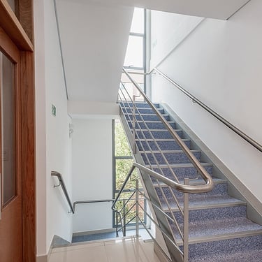 Uma ampliação vertical ao fundo do edifício foi construída para abrigar instalações, infraestruturas e uma segunda torre de escada. Isso ajudou a economizar área nobre do edifício para salas de atendimento e exames.