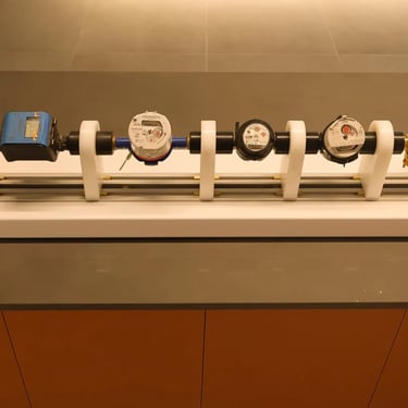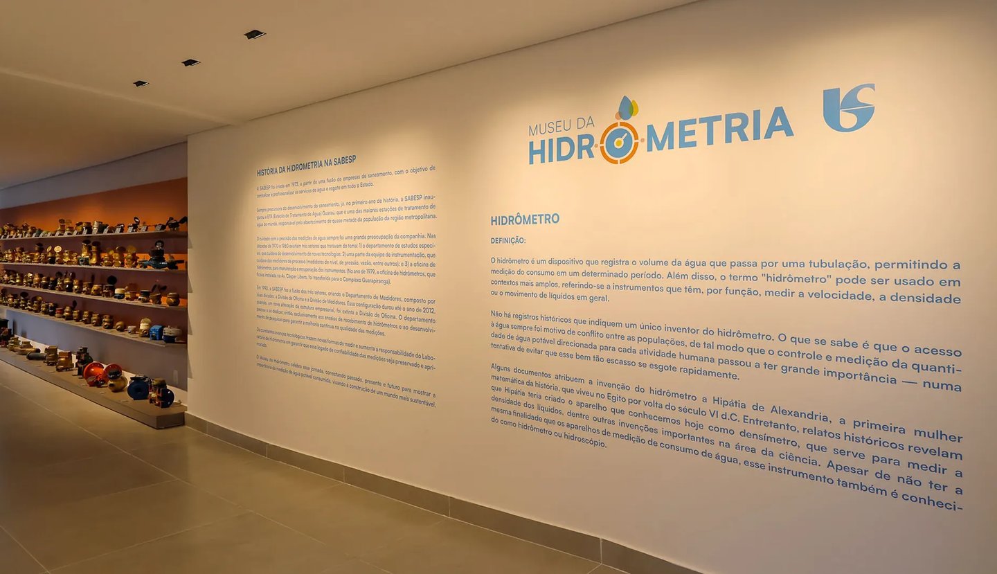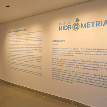 Como parte de uma ampla reestruturação das instalações do Laboratório de Hidrometria da Sabesp, me foi atribuída a missão de criar um espaço para exposição do acervo da hidrometria. Esse acervo conta com extensa coleção de hidrômetros tanto utilizados pela empresa ao longo de sua existência como recebidos de outras empresas e instituições.